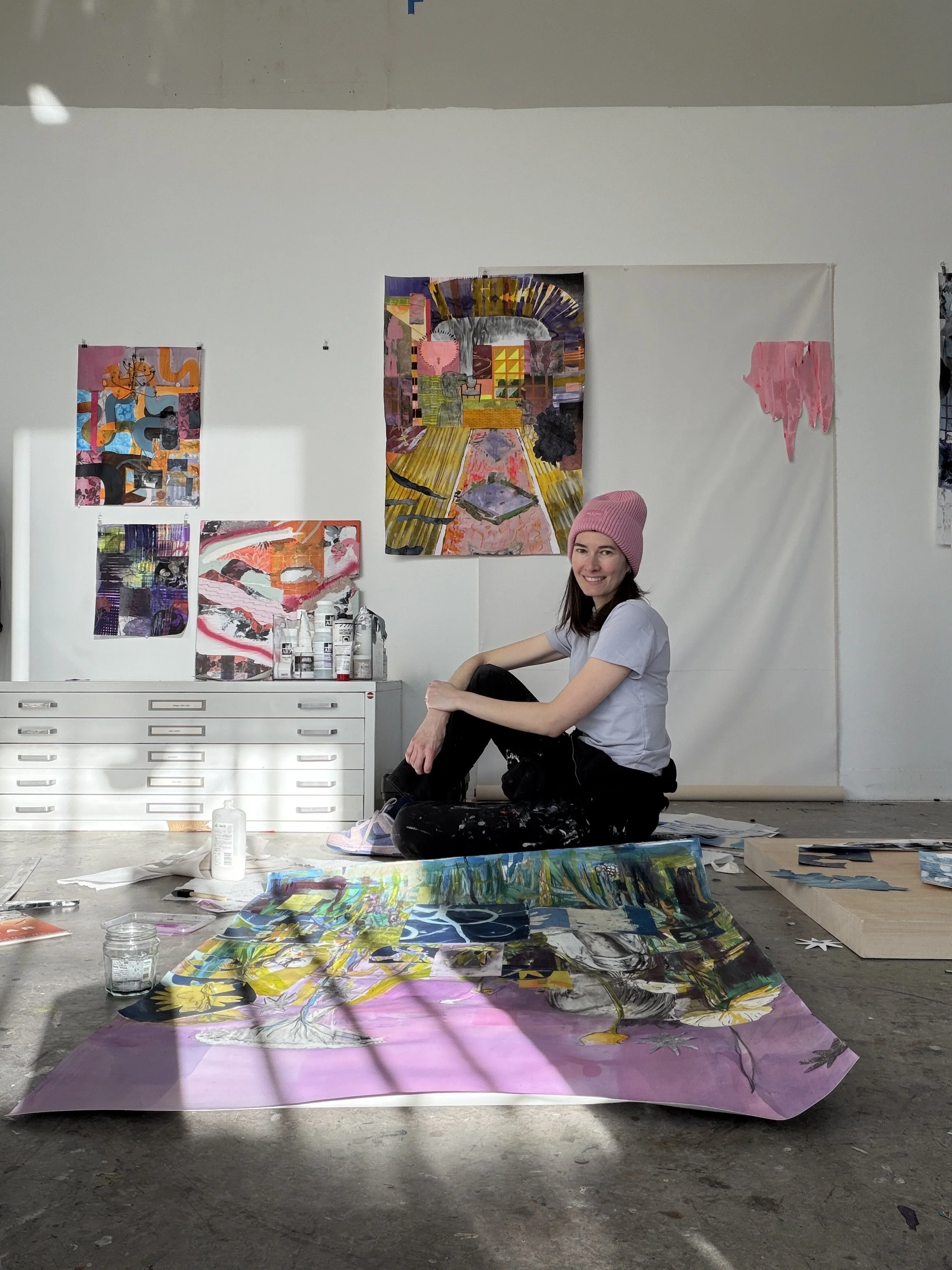 Three of my works were included in Permission, Slip a group show celebrating our “permission play, to wander, to step outside the bounds” as Delphine Hennelly, our cohort mentor puts it. Our group of artists worked together for almost a year, meeting on Monday nights to discuss our practices, works, conduct critiques, attend virtual studio visits and meet with visiting artists. Was it a surprise that we were a group of women who all asked about this concept of permission, this far away land that sounds mythical and yet so close to the hand? Delphine asks: “How often do we, as artists, look outward for affirmation—for some external nod that says it’s okay to use ‘this’ color, to fracture the rules of ‘that’ composition, to stray from familiar forms of representation, to be abstract? Hesitating at the edge of risk, there comes a crossroad in every artist’s project when a vital need to reclaim a sense of permissiveness appears. Not as a borrowed privilege, but as an inner stance—one that cannot be outsourced. To assert this stance from within is to reorient one’s perspective. It is to remember that permission to give shape to thought, ultimately, is not a fixed point, but a shifting passage- a slippery road where freedom emerges through the very act of seeking.” The group show was held in Chelsea, at the NY Crit Club Gallery in July 2025. Other artists in my cohort were Joanne Boyle, Hong Yang, Rachel Siminoski, Alexandria Nazar, Clo, Carlisle Burch, Sara Jean Odam, Jane McKenzie, Joan Hanley.