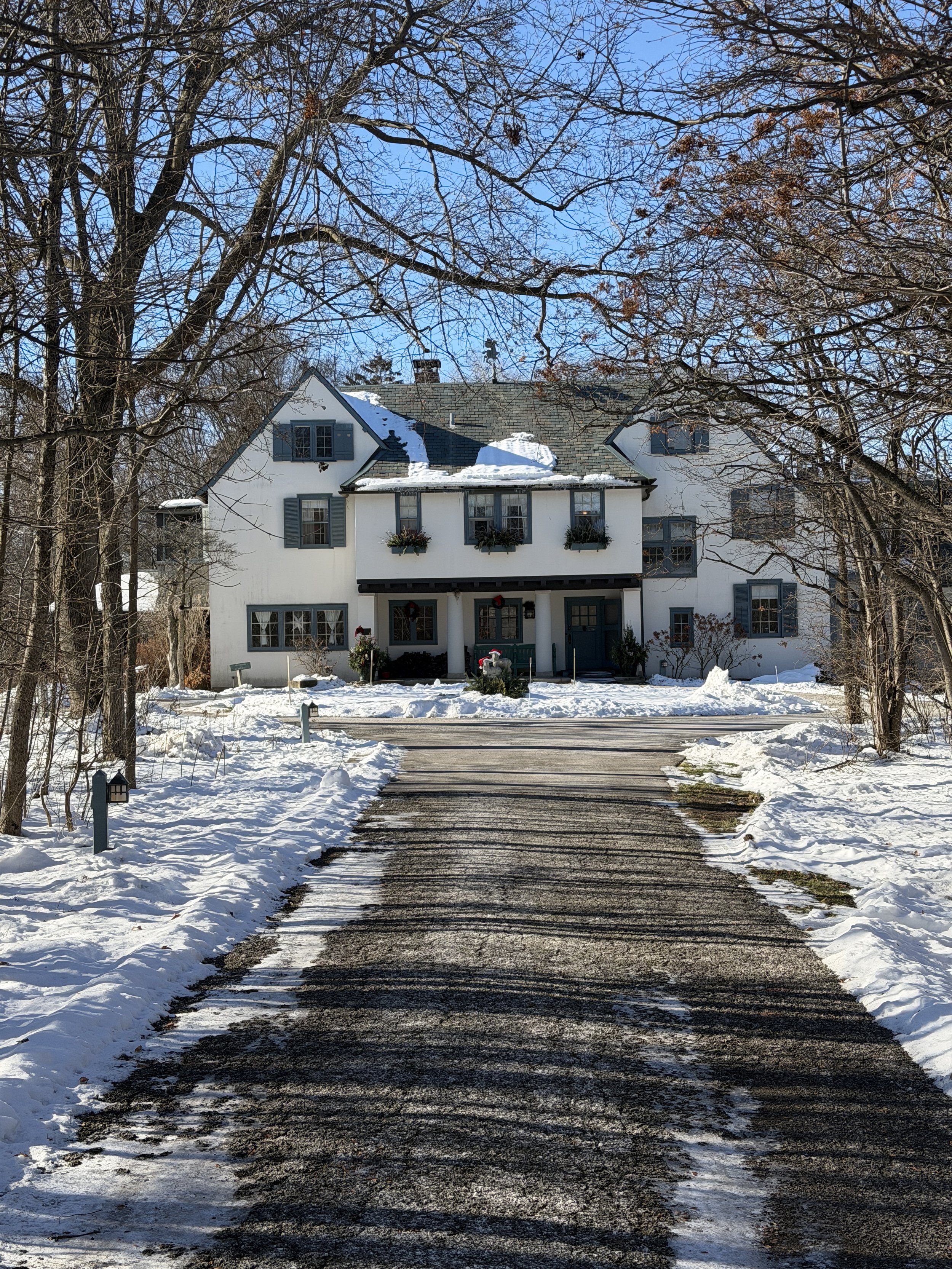In December 2025, I attended the Ragdale Residency in Lake Forest, IL for 18 days. There I worked in the studio on collages, small and large, that incorporated elements from this Arts and Crafts Movement historical house built by the architect Howard Shaw. The estate has many houses on the grounds, including new contemporary buildings such as the dance and music studio. Each house features big fireplaces that prove very useful when it’s -22 degrees celsius outside. I was in search of cold and snow. I got both! I loved the added interiority it created, a feeling I explore in my work. Printing on rice paper, using a bigger flat brush to drag the paint and create patterns, using colored pencils and painting with plaster on black paper were my main moves. I also started to teach myself embroidery. Far from my usual responsibilities, time stretched and I worked between 9 to 11 hours a day. When getting ready to go to a residency, or on a trip, I always have this fear of not packing the right supplies. I packed my acrylic tubes, ink, embroidery supplies, lots of paper, matte medium. However, I ended up ordering more paper and took a little trip to a Blick store to complete what I had. Restrictions can be frustrating of course (For example, it has been impossible to find a sewing machine and an ink jet printer, two essential props to my work), but it can also open up possibilities: mixing paint in a new way, finding more media interactions. I always pack something inhabitual in the hope that a discovery will happen. This time, my pastels helped. I used them to transfer, but also to create texture on a print ghost on rice paper ( a portrait of my brother). Being in a new environment, mining the place for meaning and connections, is also very productive to me. The snow receded during my second week and I discovered pods on the ground of the courtyard that I crossed dozens of times a day. The pods were huge, a beautiful maroon color, flat but twisted. I made rubbings of them to familiarize myself with them and then went on to making drawings and prints. I still have to research the name of the tree they come from, but what matters to me at this is their proximity rather than their botanical origin. I also took the time to read “Invention, Memory and Place”, an essay by Edward Said to whom memories of places are political acts and allow personal survival. I also spent time with painter Kerry James Marshalls writings and interviews in a book I borrowed from the Lake Forest library. The book documents early collages by Marshall and this gave me a little boost to explore my own collages in a more spontaneous way. I worked on defining different structures for the collages in the hope to shed light on different processes. Building a collage using the architecture of a room, building a collage back to front, building a collage based on a sentence (left to right) and such. More to come on that front.